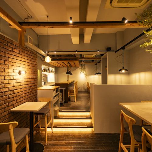 グレーを基調としたモダンな空間はSNS映え間違いなし♪女子会にも最適なテーブル席も完備しております。