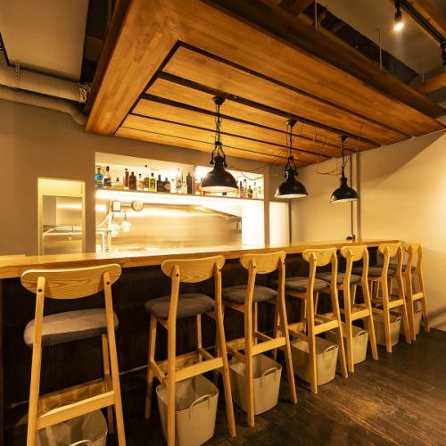 《雰囲気抜群◎》横並びのハイテーブルは雰囲気抜群でデートにピッタリ☆落ち着きのある店内で、こだわりの詰まったお料理をごゆっくり味わっていただけます!記念日やデートなど、大切な人との特別なひとときを過ごしたい日にいかがですか?【梅田 肉バル 誕生日 貸切 ランチ 女子会 大阪 大衆酒場 バル クリスマス 忘年会 ピザ イタリアン】